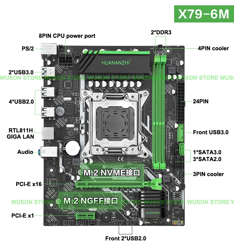 Special Offer HUANANZHI X79-6M LGA2011 اللوحة الأم مع سيون CPU E5 2650 العلامة التجارية الكبيرة RAM 32G(2*16G) REG ECC مرحبا السرعة NGFF/NVME M.2 SSD فتحات Discount 27% Today!