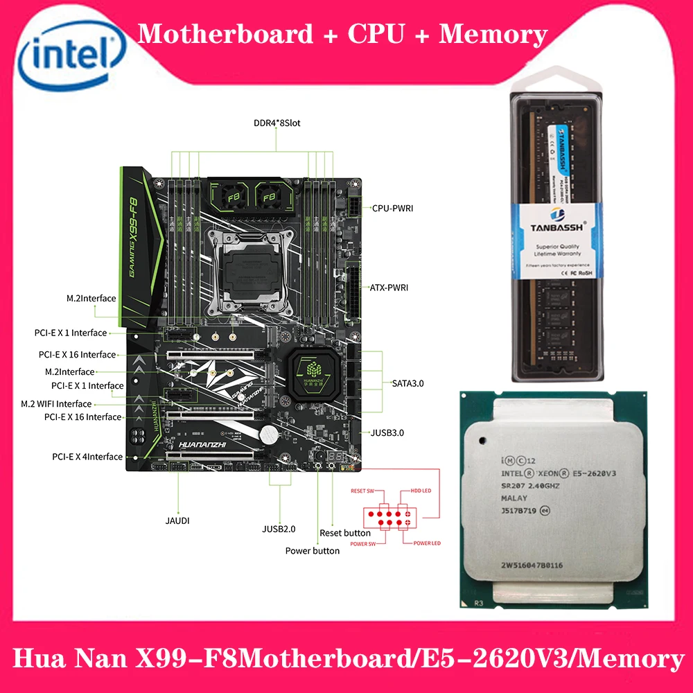 Special Offer Huananzhi X99 F8 اللوحة الأم مع إنتل سيون E5 2620 V3 مع 8G DDR4 غير ECC الذاكرة كومبو مجموعة NVME SATA 3.0 USB 3.0 Discount 35% Today!