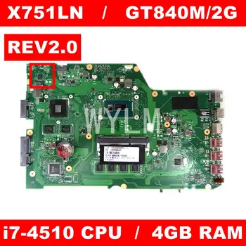 Special Offer X751LN I7-4510CPU 4GB RAM GT840M/2G اللوحة REV2.0 ل ASUS X751LX R752L R752LD X751L X751LD X751LJ A751L اللوحة المحمول Discount 0% Today!