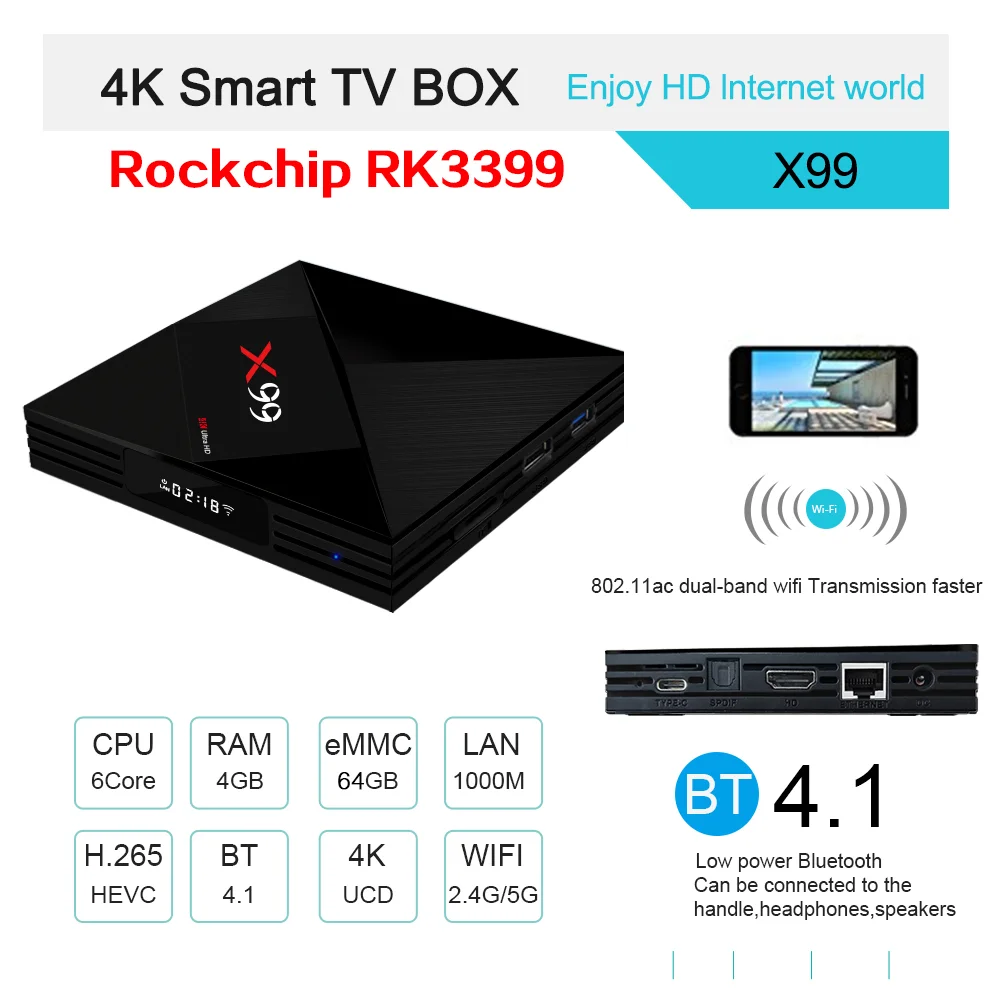 Special Offer 2021 الرقمية مربع التلفزيون الذكية أندرويد Rockchip RK3399 DDR3 4GB RAM 64GB ROM فك التشفير استقبال X99 4K مع واي فاي مشغل الوسائط Type-C Discount 30% Today!