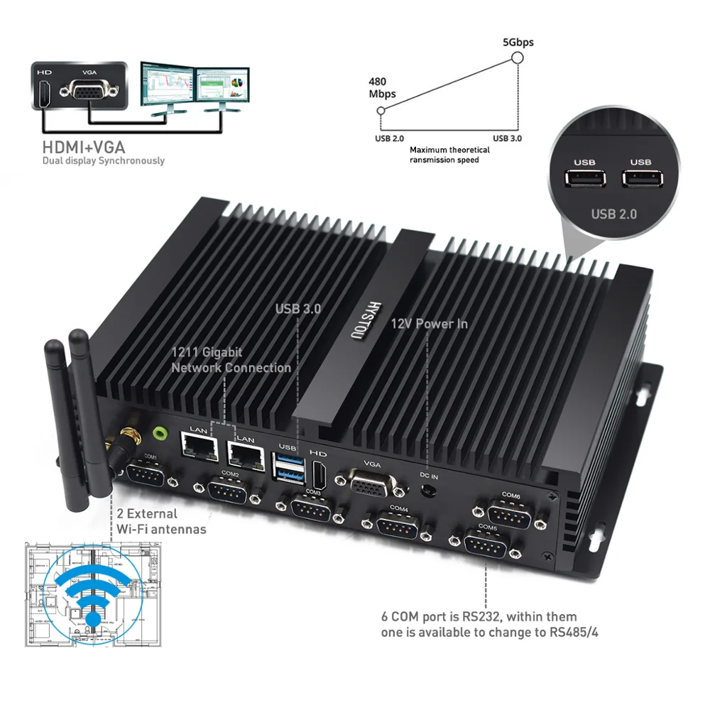 Special Offer HYSTOU إنتل كور I5 4200u كمبيوتر صغير صناعي مزدوج عرض 6 RS232 COM كمبيوتر مكتبي ويندوز 10 برو مع LVDS 2 * Ddr3 RAM WiFi Discount 22% Today!