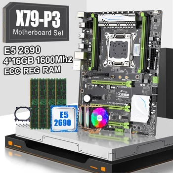Special Offer JINGSHA X79P3 LGA اللوحة مجموعة قنوات رباعية مع Xeon E5 2690 و 4*16GB = 64GB 1600MHZ Ddr3 Ecc Reg RAM و 1 قطعة وحدة المعالجة المركزية برودة Discount 30% Today!