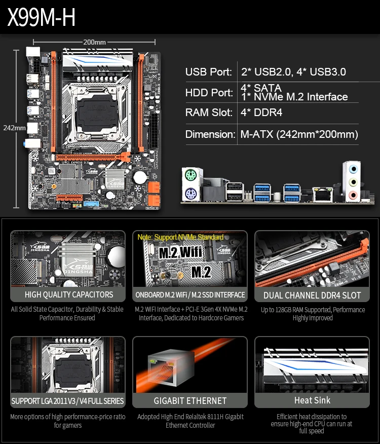 Special Offer X99M-H LGA 2011-3 اللوحة الأم مع XEON E5 2678V3 و 4*8gb = 32GB DDR4 2133MHZ ECC REG RAM دعم 4 الذاكرة و SSD M.2 Discount 31% Today!